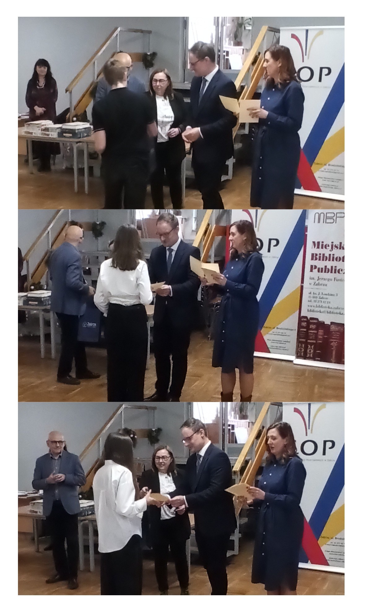 Dnia 10.12.2025 r. uczniowie – Wiktoria, Karolina i Szymon – reprezentowali naszą szkołę podczas XXIX Finału Miejskiego Konkursu Ortograficznego dla uczniów klas VII i VIII. W tegorocznej edycji udział wzięło 38 uczestników, a 20 najlepszych zmierzyło się w ścisłym finale. Było mnóstwo emocji i zdrowej rywalizacji. Z radością informujemy, że Karolina z kl. 8a znalazła się w pierwszej piątce najlepszych uczestników konkursu, co jest ogromnym osiągnięciem i powodem do dumy dla całej społeczności szkolnej. Na uroczyste wręczenie nagród przybył Prezydent Miasta Zabrze, Pan Kamil Żbikowski, który pogratulował uczestnikom wysokiego poziomu umiejętności oraz zaangażowania, podkreślając, jak ważne jest wspieranie młodych zabrzan w rozwijaniu ich kompetencji językowych. Serdecznie gratulujemy naszym reprezentantom i życzymy im dalszych sukcesów!